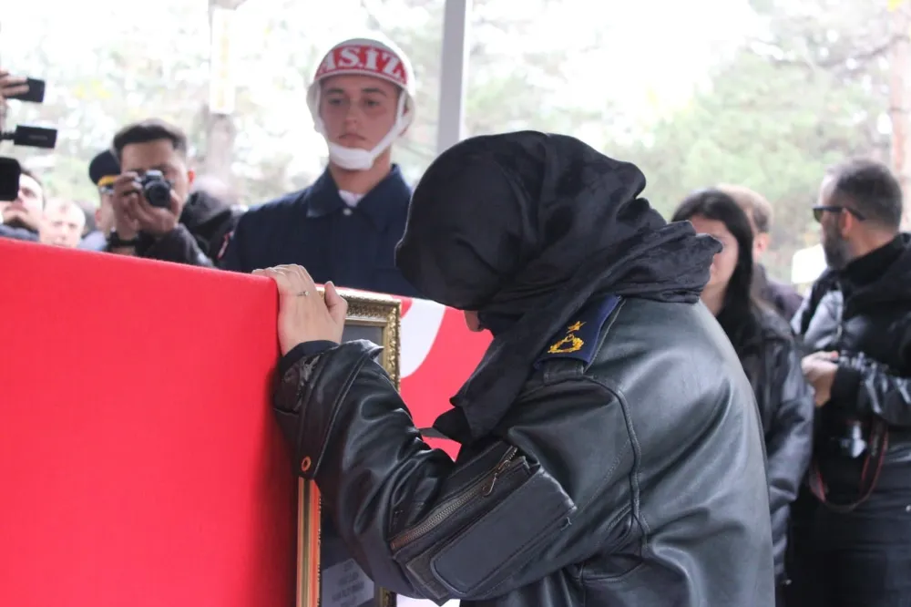 Şehit eşini askeri montuyla son yolculuğuna uğurladı