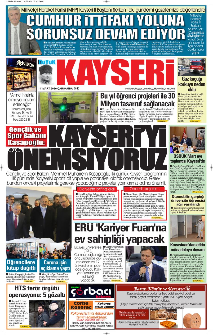 Kocasinan Kaymakamı Ali Candan Askerlerimiz gerçekleşen savaşlarda çok büyük başarı örneği göstermiş ve o zamanın süper güçlerini dize getirmişlerdir. 100. Yılında şehitlerimizi anmak, Çanakkale Deniz Zaferini kutlamak için yurdumuzun dört bir yanında etkinlikler yapılmaktadır. Şehrimizde de Çanakkale Deniz Zaferinin 100. Yılı coşkulu şekilde kutlanmakta ve değişik etkinlikler düzenlenmektedir. Bu etkinliklerin bir tanesi de bugün beraber iştirak ettiğimiz şehitlerimizin hatırasını Kayseri girişinde yaşatmak için düzenlediğimiz ağaç dikme kampanyamızdır. Bu projemizin toplam maliyeti 400 bin TL dir. Dikeceğimiz bu 100 bin fidanı Orman ve Su İşleri Bakanlığımız, sandıklı ve şuhut fidanlığından tasis etti ifadelerini kullandı.