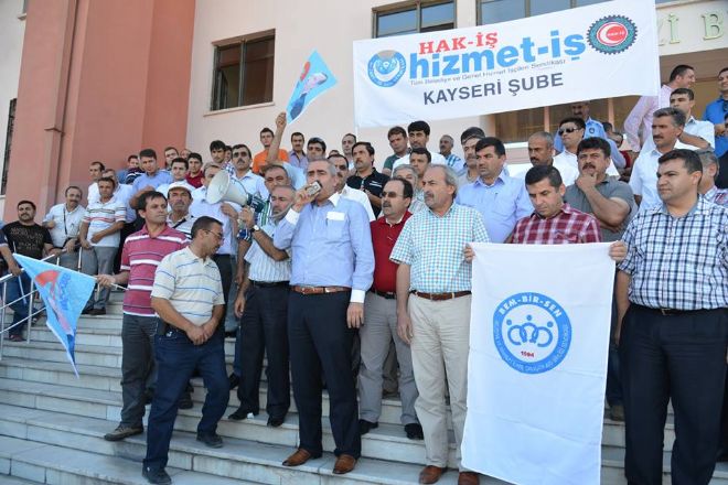 Mesai bitiminde Melikgazi Belediyesi bahçesinde toplanan kalabalığa Hizmet-İş Sendikası Kayseri Şube Başkanı Halil Özdemir, Memursen İl Temsilcisi Adil Kalkan, Bem-Birsen Şube Başkanı Mehmet Karakaş ve sendika üyeleri katıldı.